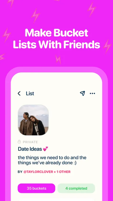 • Create, share, and organize your bucket list, which can include anything you want to do.