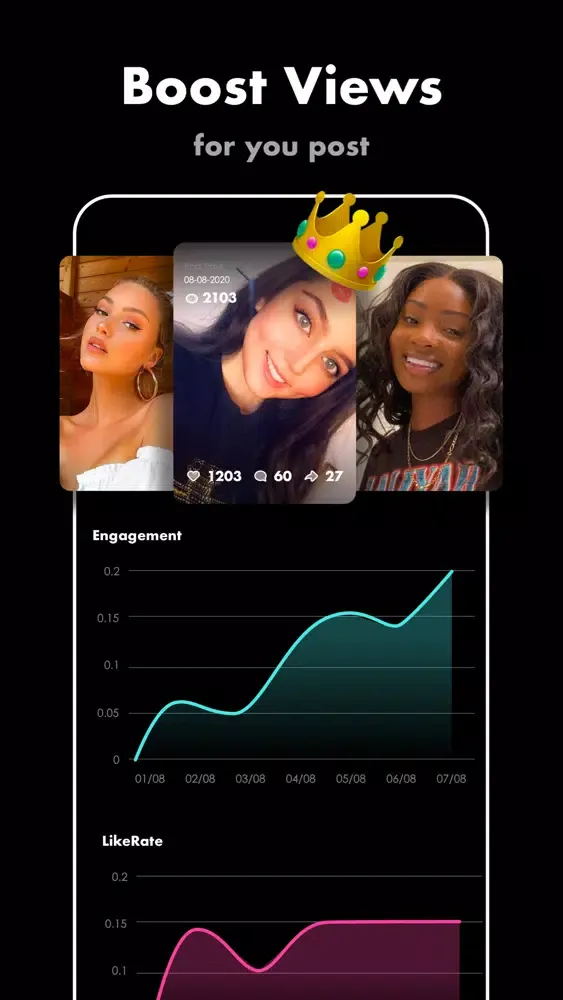 We give you the data, also our suggestions. After you sign in, Tik Tracker will start learn your preference and taste, help you to expand the social life. We also have a special 3 features for you to help you make better choices and create attractive post.