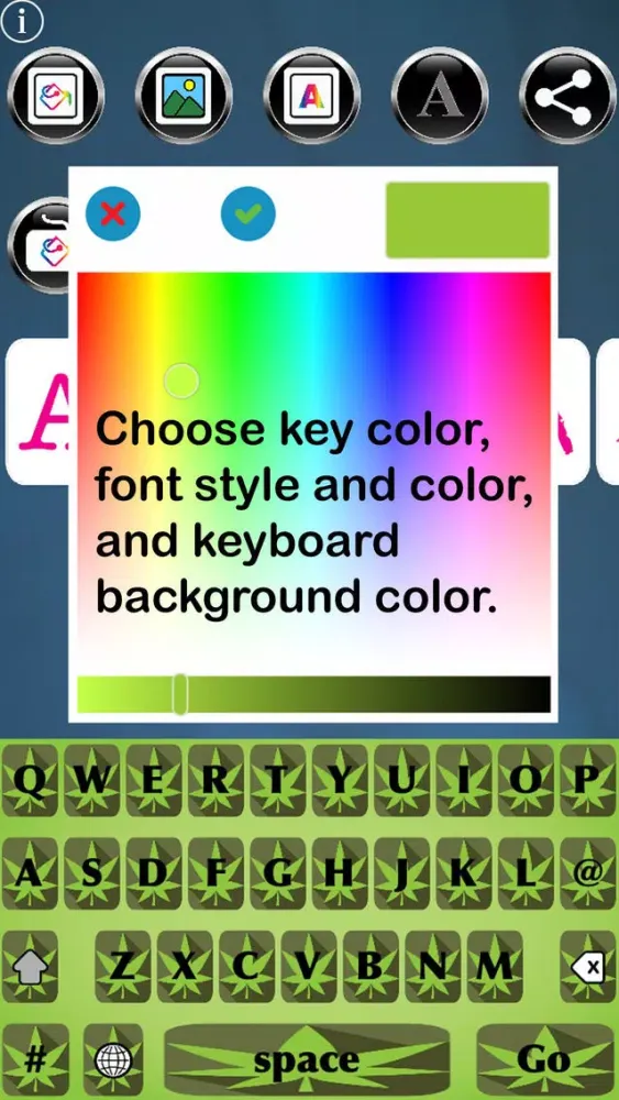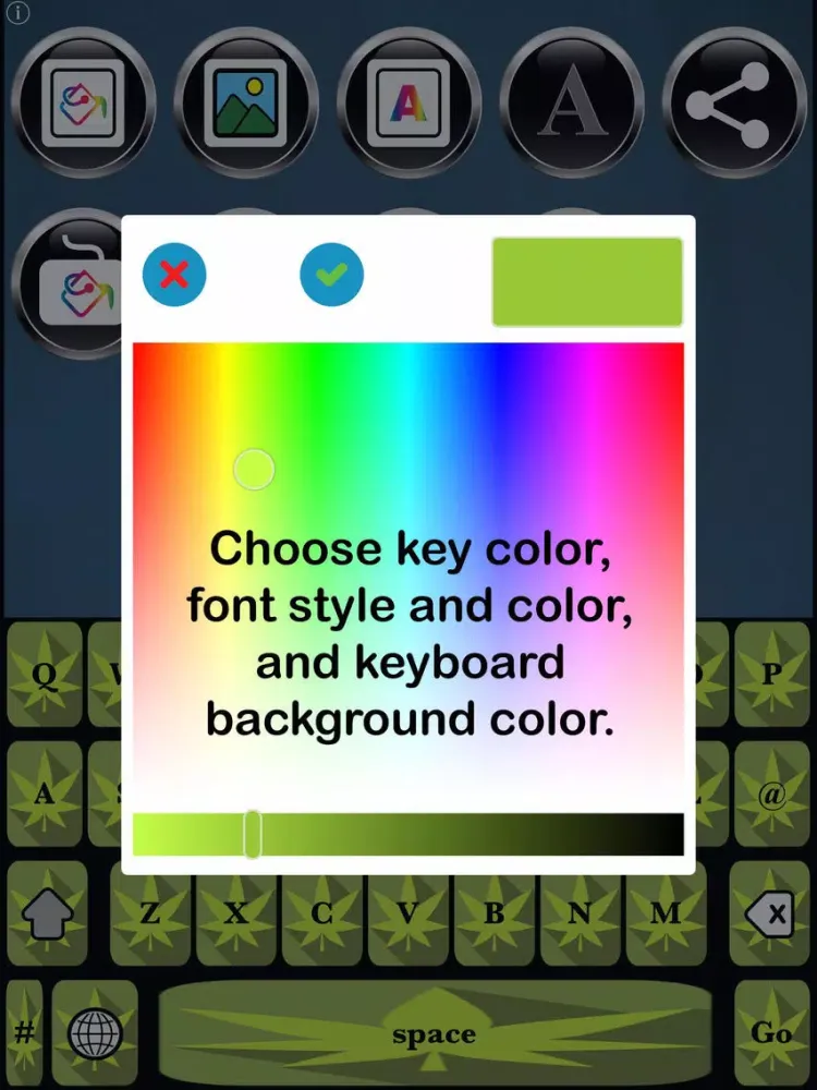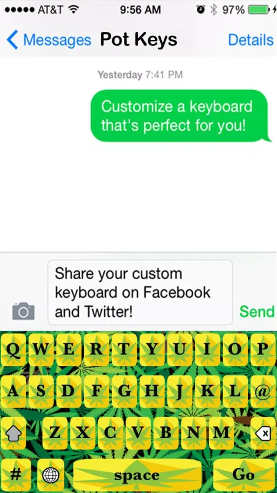 Appsolute Madness, Inc., does not condone or encourage the illegal use of pot or hemp. We DO, however, condone and encourage freedom of expression, including your use of our pot- and hemp-related symbols to express your support for the movement to legalize pot and hemp in places where they are not currently legal. In that regard, our Pot Keys Free Custom Keyboard app specifically enables you to stylize, customize and personalize your own keyboards to express yourself with a theme meaningful to you.