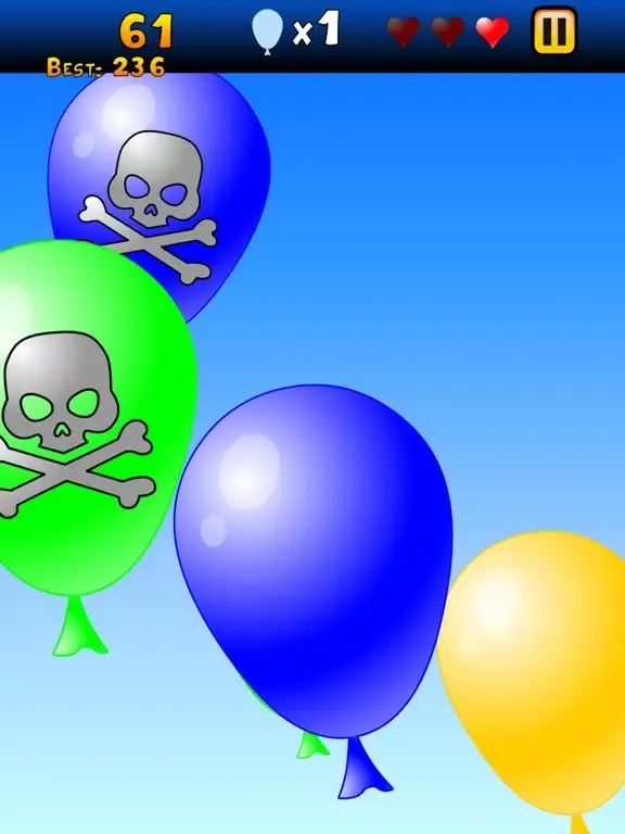 You start with three lives. Just pop blooms until you run out of lives! Don not tap the skull ones (Or it will be “Game Over”), and don´t let any other ballon escape! (It would cost You one live).