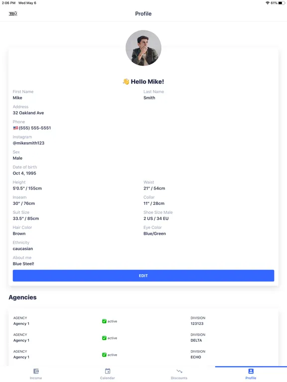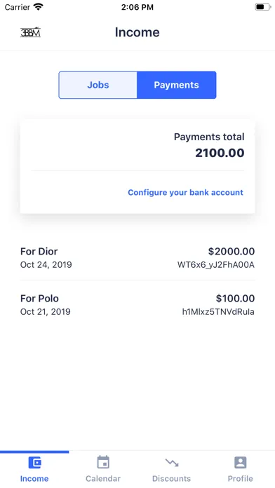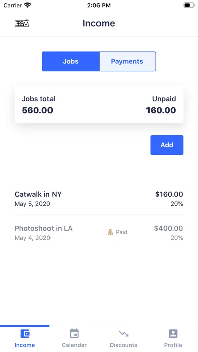 The 3BBM Model app puts all of your casting appointments, go-sees, test shoots and jobs in one place. There is also an income tracking feature so talent can keep track of their income. It auto-deducts your commission so you can see how much you are owed, reminds you if payments are overdue, and lets you mark when you've been paid, so you can see what you've been paid and what you're still owed in the same place.