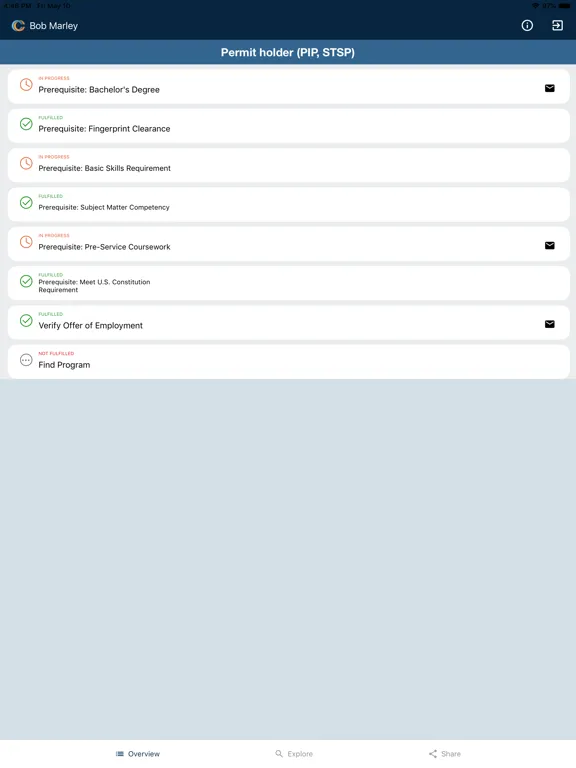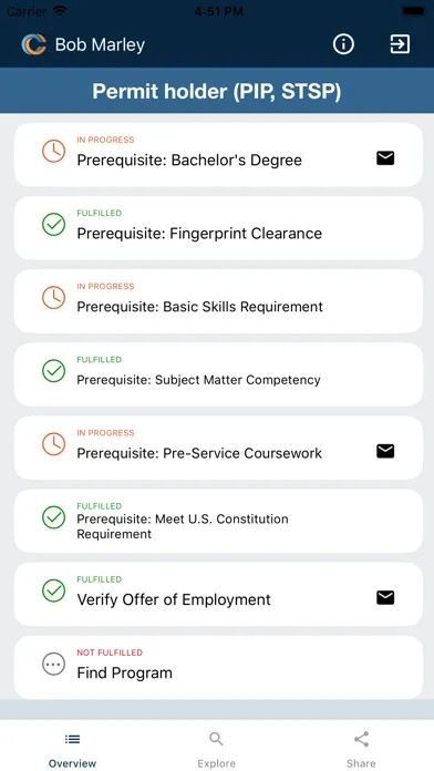The purpose of the app is to help teacher candidates keep track of their progress in completing the steps necessary to get a full teaching credential. In addition, the app will allow them to share progress with their teacher prep program, the school district they are employed at, the principal they work under, and any other people they need to. This will allow all of these parties to help guide the teacher candidate if they are falling behind schedule in completing their goal of becoming a fully credentialed California teacher.
