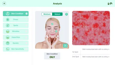 Dermobella Skin 2 is a new skin diagnostic app that can analyze multiple skin parameters such as pores, wrinkles, pigmentation, sebum, moisture, skin elasticity, skin tone, skin sensitivity, skin condition, skin health, impurities (acne, dirt), skin age, skin dead skin cells and many more. In addition to localized skin analysis, Dermobella Skin 2 also feature a Full Facial Skin Analysis with additional parameters, making Dermobella Skin 2 the most powerful skin diagnostic application in the industry today.