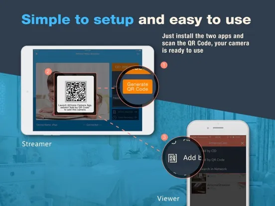 Step 2: Download and install the viewer app AtHome Camera app in device B which you want to use as a viewer. Open the app, sign up and login, select "Add by CID" or "By QR Code" to add a device A, so you are all set to enjoy the live streaming !