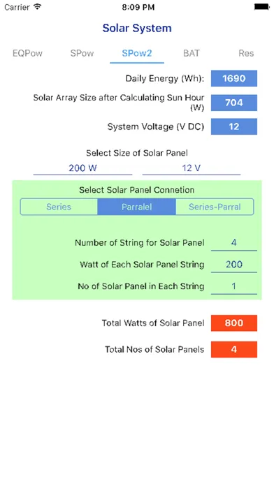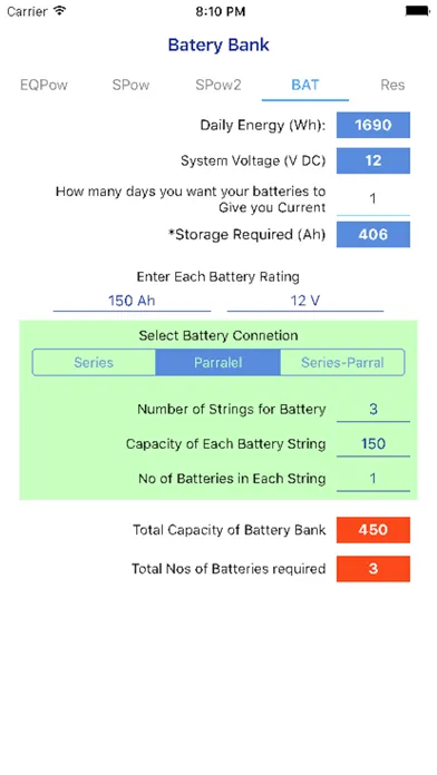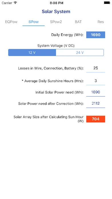 The PV Calculator helps you size the battery bank, watts of solar panels and the solar charge controller for your needs.