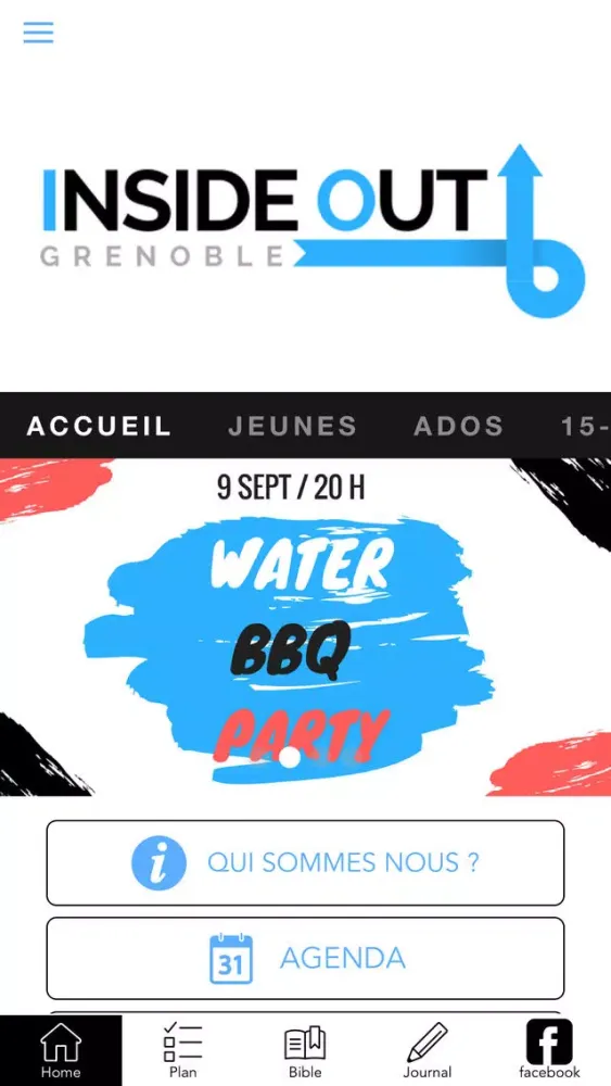 Cette application vous permet de suivre l'évolution du pôle jeunesse (12-35 ans) "Inside Out" de l'église du Chandelier à Grenoble.