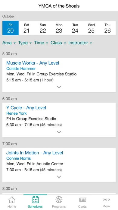 • Easily view schedules for each day and filter for the types of classes that you like.