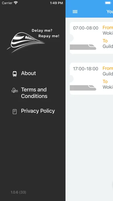 This app should only be used in conjunction with data from your train operator. You must confirm with your train operator to confirm that your train meets current Delay Repay scheme claim rules before submitting a claim.