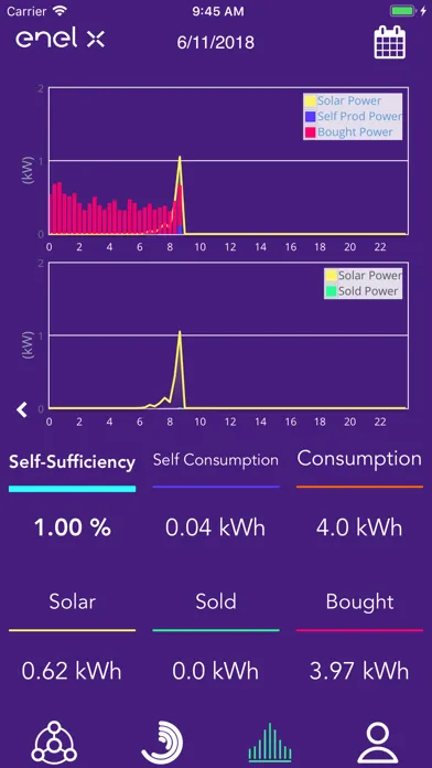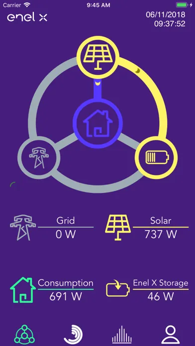 Enel X Storage allows you to control your Enel X Storage system, anytime and anywhere. You will be able to monitor the energy generated by the solar panels and by your Enel X Storage, reducing the dependence of your home from the conventional power grid. Measure the production and consumption of electricity, have a real-time overview of the general system - Self-consumption, Solar production, State of Charge/Discharge of Enel X Storage, Grid Feed-in and Energy Consumption. Visualize graphs with your energy production and consumption data on a daily, monthly or yearly basis, to get a complete view of your home's energy ecosystem.