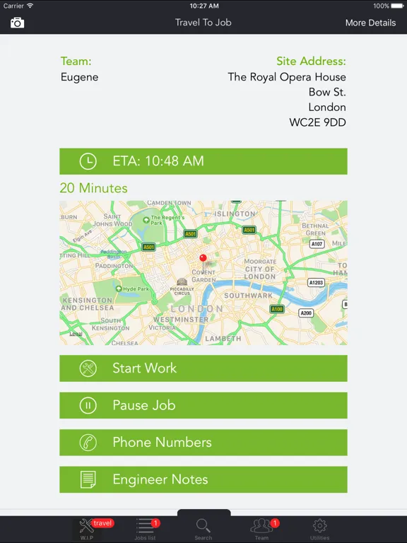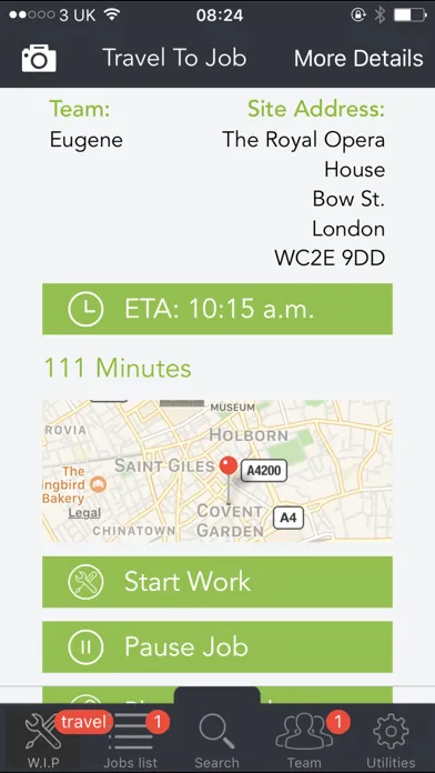 • Start, pause and complete jobs with automatic timing & GPS tracking.