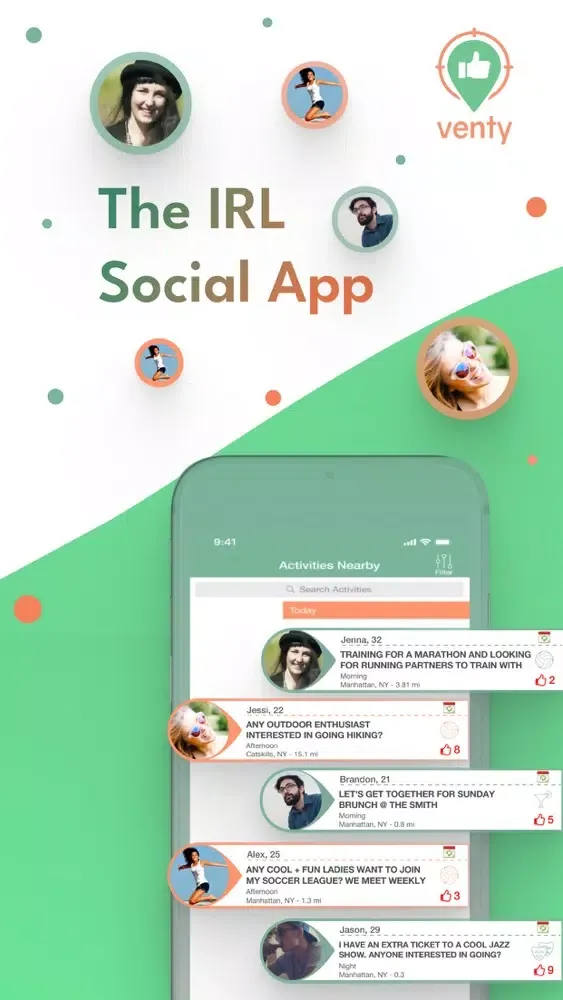Venty is a new social app that makes it easy to find people nearby to enjoy social activities. No swiping needed.