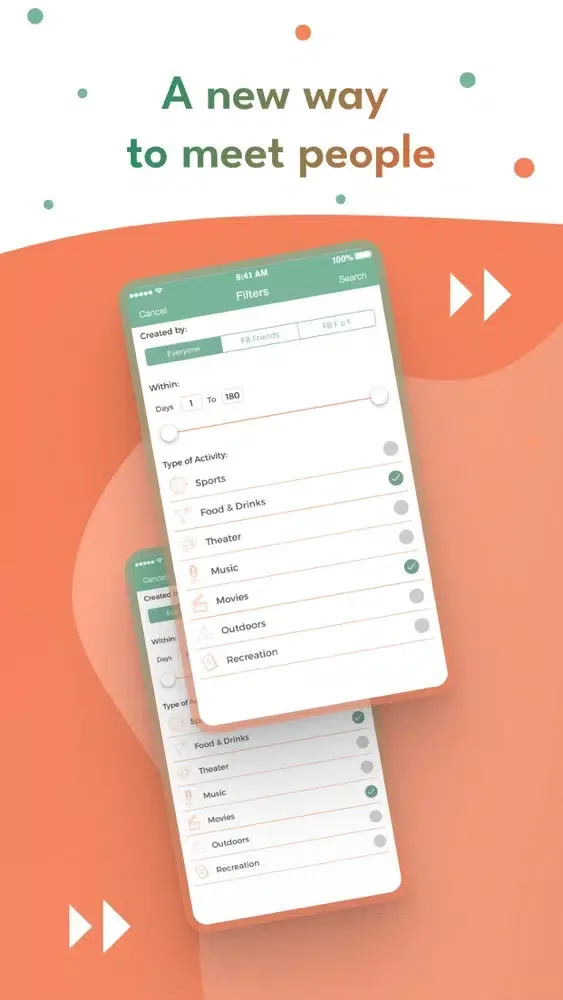 Venty gives you total control over activities. You decide what activities to join, when and where, and with whom.