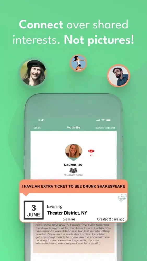 Create or browse activities created by others and send a note to join. Make new friends while having fun.