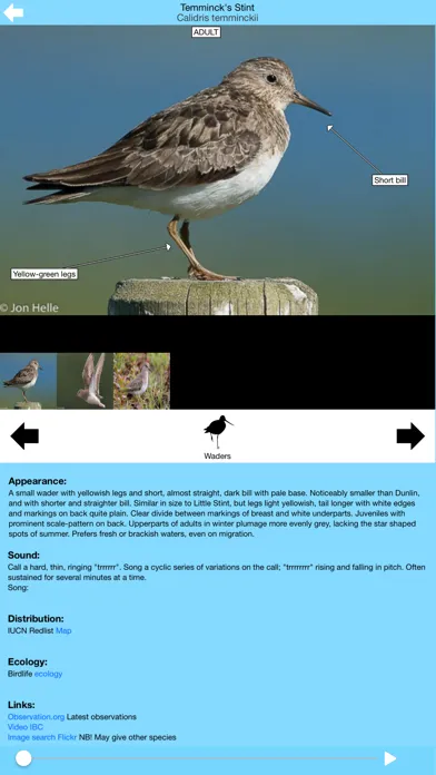 Lets you use the main features of the birdid.no website on your iOS device. Download the bird guide after installing the app to bring with you sounds and images to identify birds, or download quizzes to sharpen your id-skills. Allows off-line content as well. Select language inside the app. Supported languages for species names: Armenian, Bulgarian, Catalan, Croatian, Czech, Danish, Dutch, English, Estonian, Finnish, French, Georgian, German, Hungarian, Icelandic, Italian, Latvian, Lithuanian, Macedonian, Norwegian, Portuguese, Romanian, Russian, Serbian, Slovak, Slovenian, Spanish, Swedish, Turkish, Ukrainian. Developed by BirdID and Nord University. The aim of the bird guide is to cover the whole of the Western Palearctic and new species are added automatically to your device as we progress.