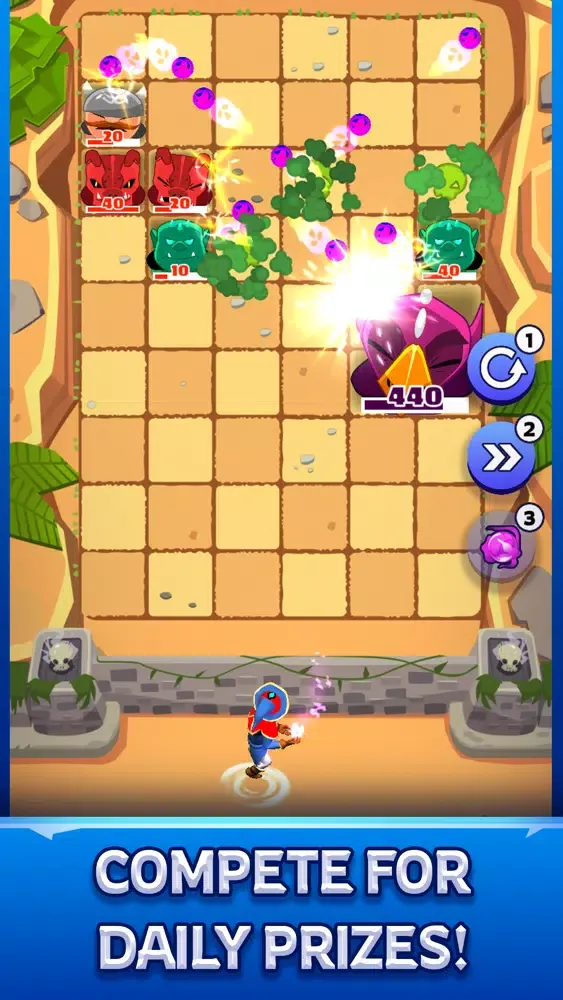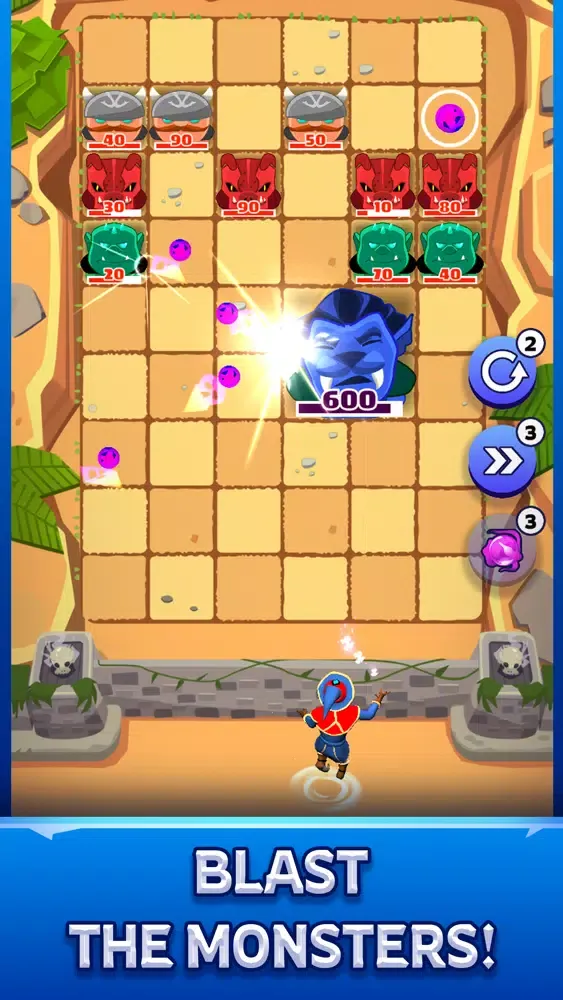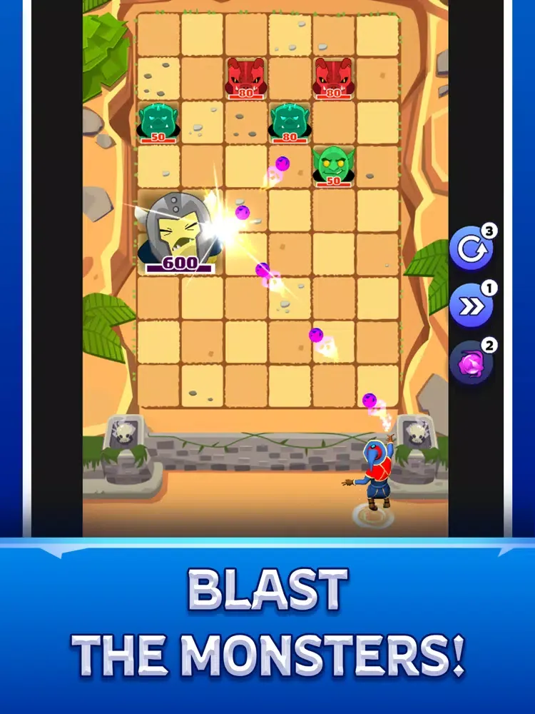 You can crush various monsters as a wizard; Swipe or tap your finger to throw the bouncy magic balls and blast the monsters before they reach to the castle walls. Try to destroy as many enemies as possible before they move down to the bottom or before out of time.
