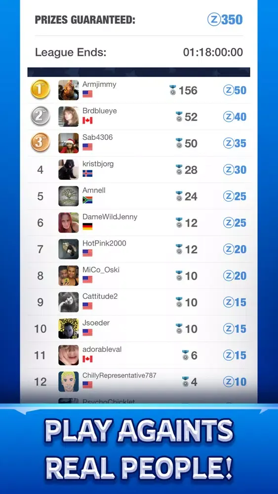 • Compete head to head against players from around the world.