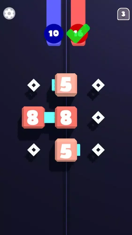 Merge the cubes according to the number of additions that appear at the top of the screen and get the right number.