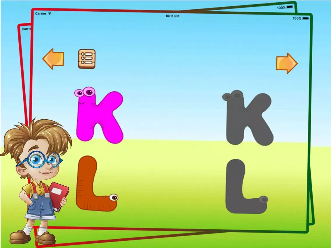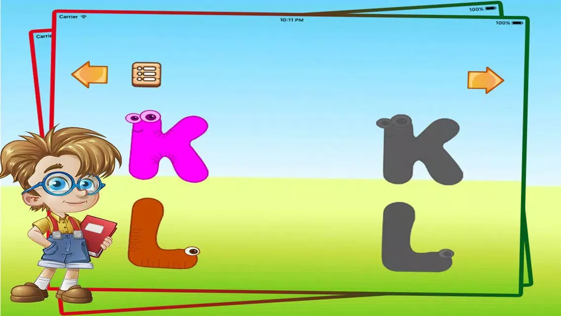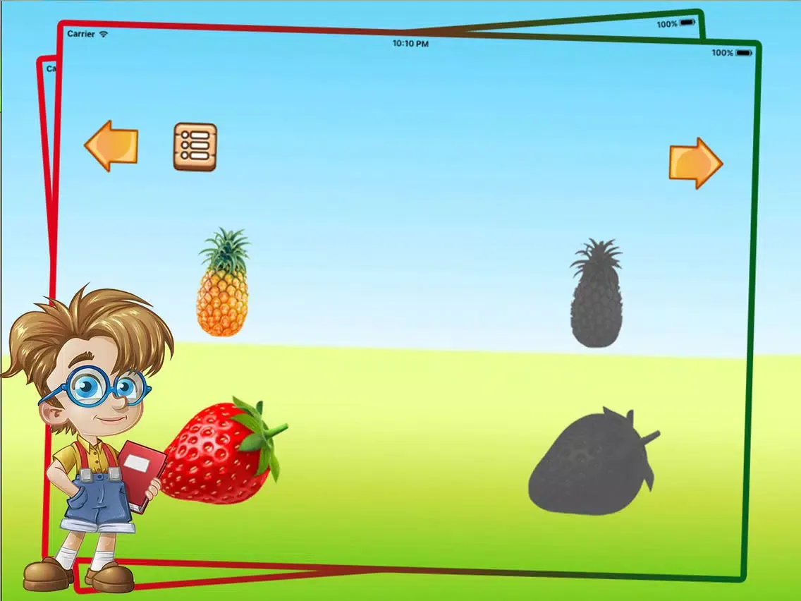 => Different categories like alphabets ,numbers, vegetables, animals and fruits.