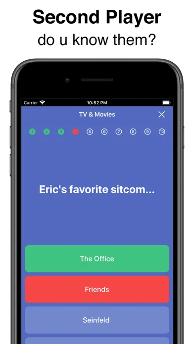 1) The first person (your friend, spouse, significant other) will receive a set of multiple-choice questions. After answering all of the questions they will hand the device back to you.