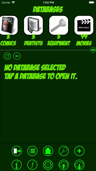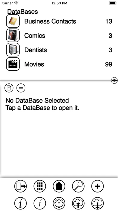 Create a new DataBase at any time from the Home screen - name, and add fields you would like to have, and save! You can then tap it to open it then start adding entries or search previously entered entries.