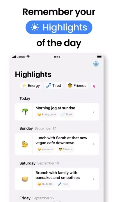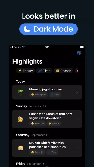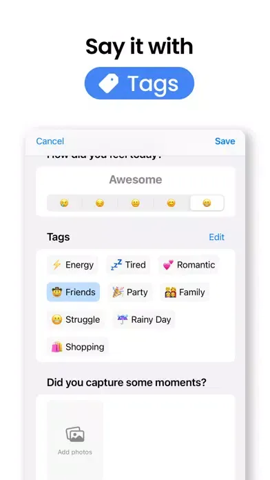 Feeling sleepy, cozy, or energized? Tag your day accordingly.