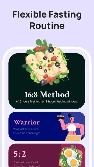Switch between fasting modes easily: 16:8, 5:2, The Warrior and more.