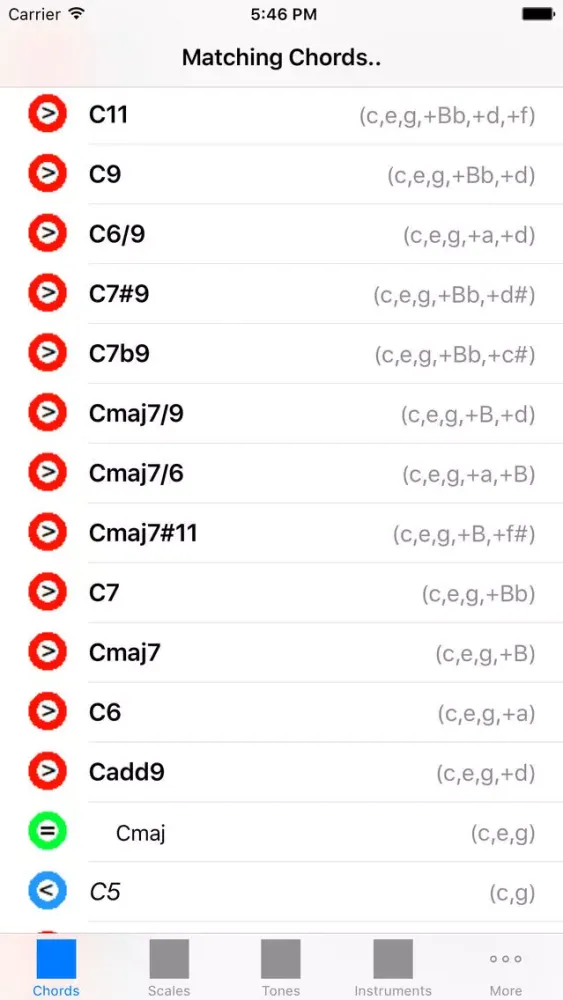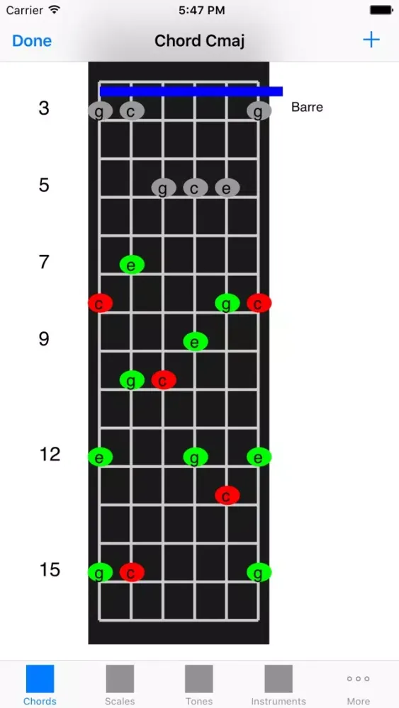 Since all chord representations are displayed on a common set of instruments Stone is the application to find alternative voicings and substitutes and to learn about harmonies and their relations as well.