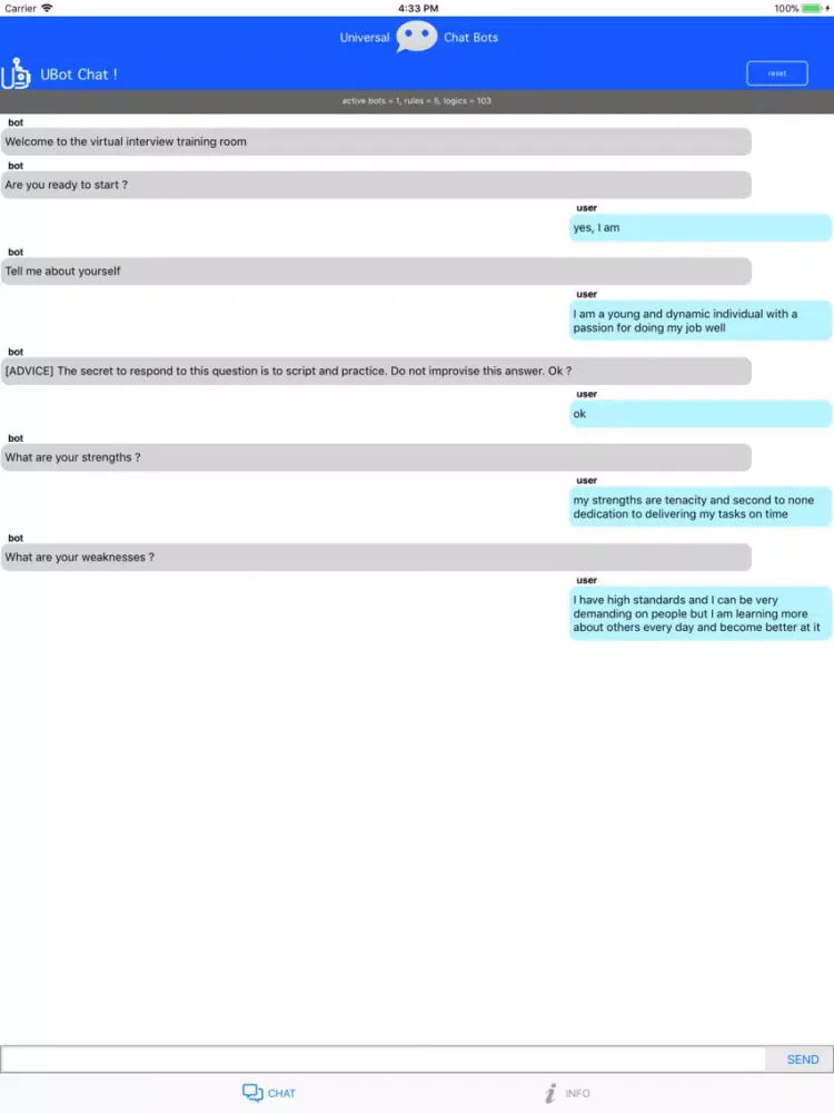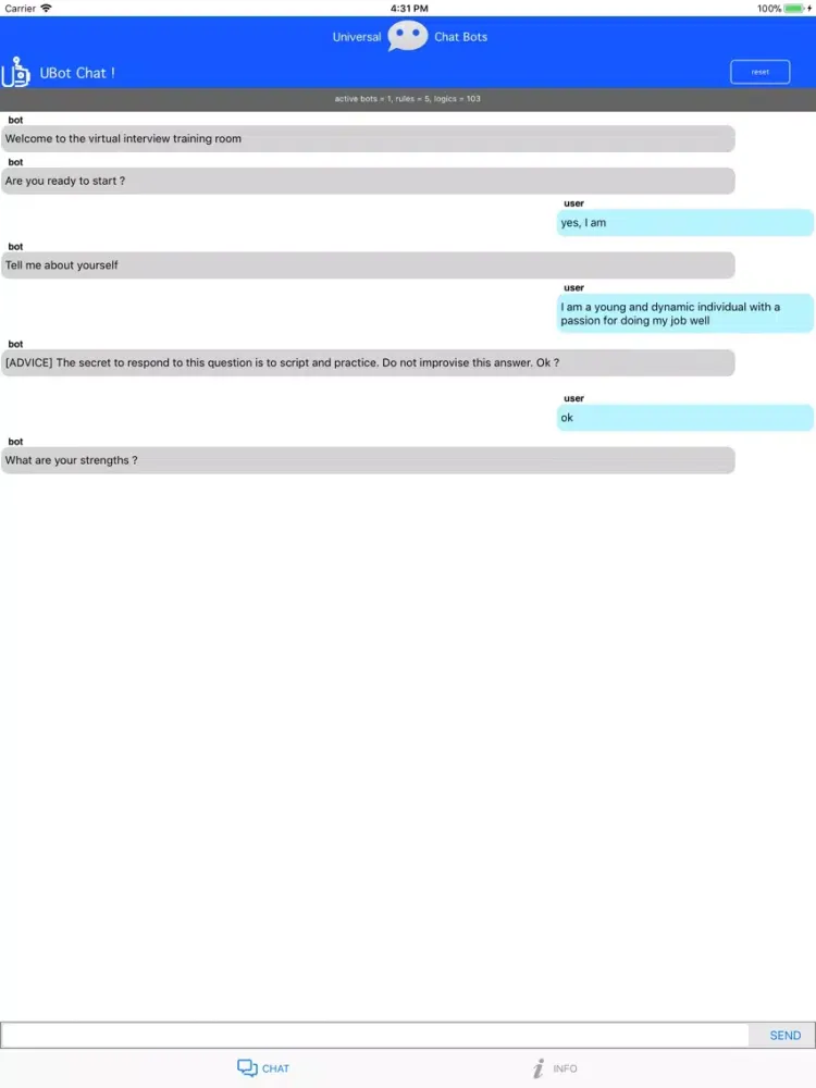 Based on our Universal Chat Bot Platform, let our little bot help you get ready and practice for your next interview.