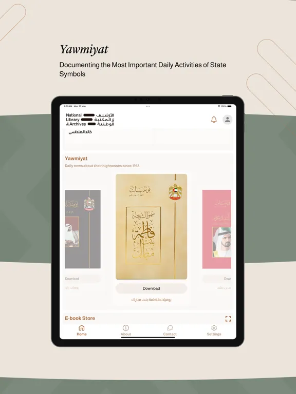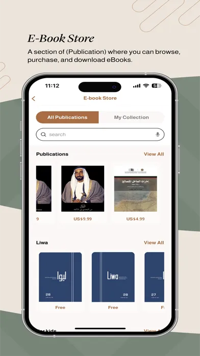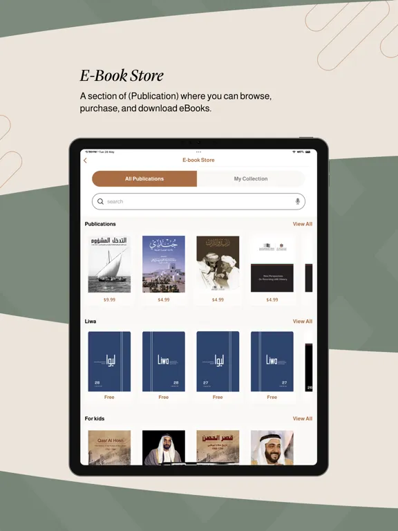 متجر الكتب الإلكترونية ويشمل إلإصدارات الإلكترونية باللغتين العربية والإنجليزية حيث يمكن للمستخدم شراءها وقراءتها من خلال التطبيق
