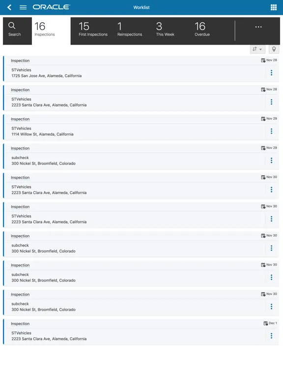 • Manage inspections with defined filters.