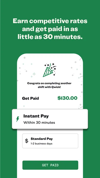 Get paid competitive rates as soon as 30 minutes after your shift.
