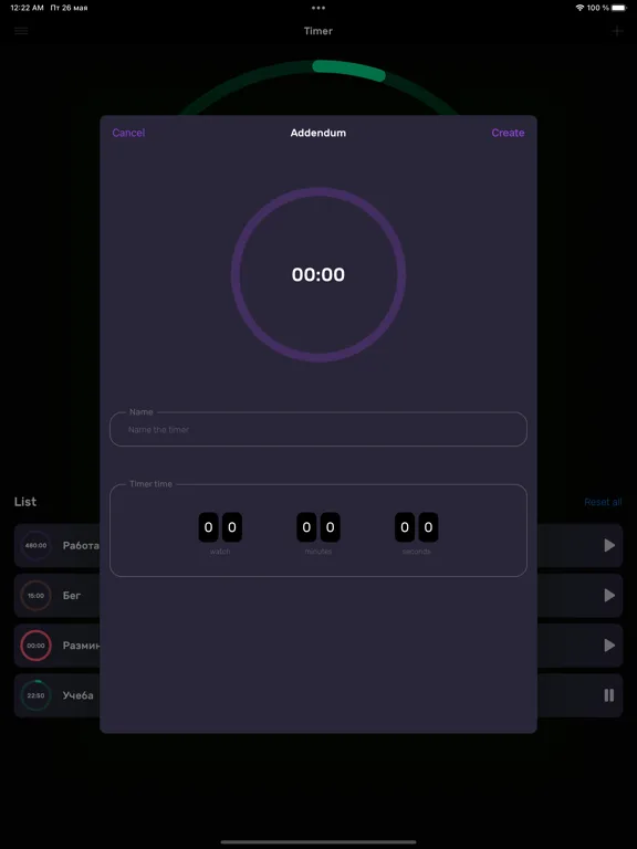 In multitimer mode, you can save the most desirable time intervals by naming each one.
