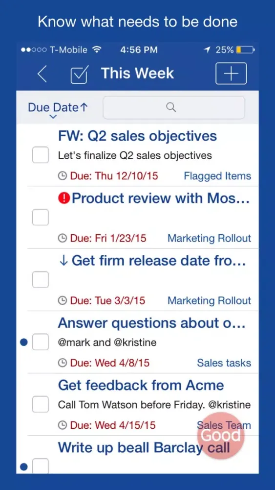 GET MORE DONE with full task management. Organize tasks to help manage your week. Easily set task priority with drag-and-drop positioning. Set reminders notifications for important tasks.