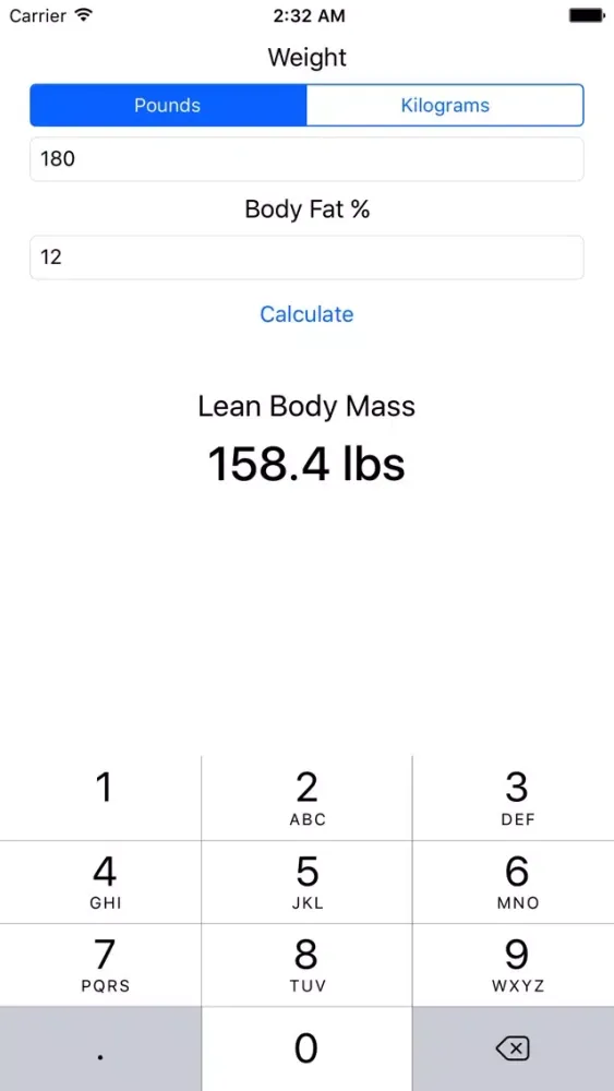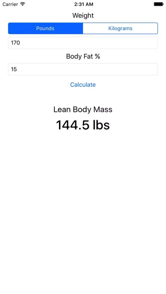 A simple to use lean body mass calculator. Great for quick on the fly personal trainers or just fitness enthusiasts.