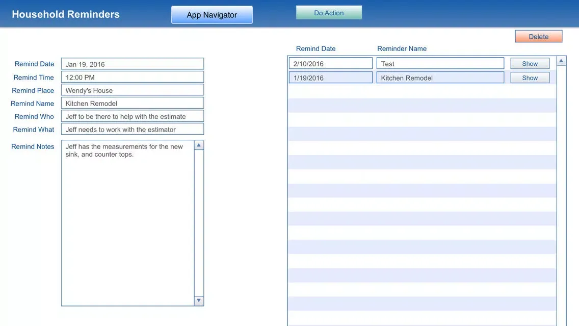 The life manager database was developed using three different prior applications combined into one. This is truly a utility database that provides productivity for people who need to gather and manage information about their lifestyle.