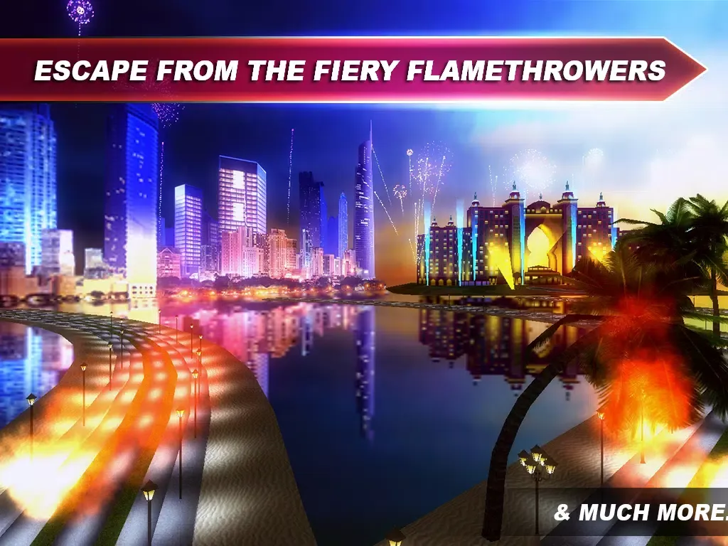 Help the Indiawaale in their quest to pull off the biggest diamond heist at the magnificent Atlantis in Dubai at the World Dance Championships. Explore all the eight levels set in different locations and create dhoom at: The Bank, The Dockyard, The Streets of Dubai etc. and overcome the obstacles in the form of watchful guards, lasers, falling cargo, burning barrels to get to the final level: The Magnificent Atlantis Hotel.