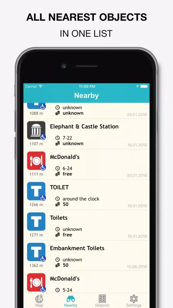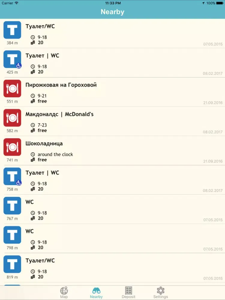 In our database already have a lists of public toilets in Amsterdam, Berlin, Copenhagen, Kiev, London, Moscow, New York, Novosibirsk, Paris, Prague, St. Petersburg, Taipei and many other cities. And you can supplement it by adding objects in the cities where you are!