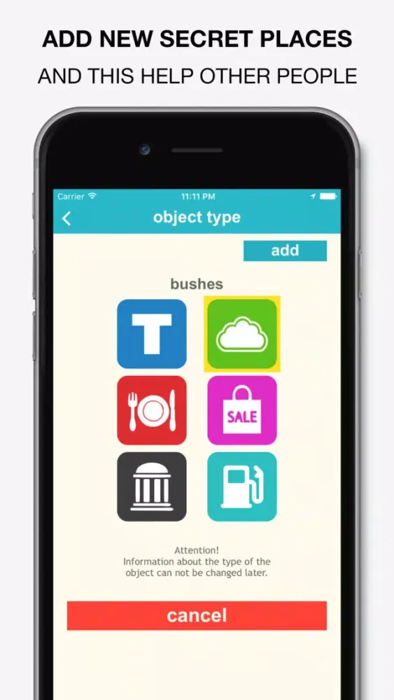 – Just press the screen to add a new object on the Map. The main condition for of such an object – there has to be a toilet!