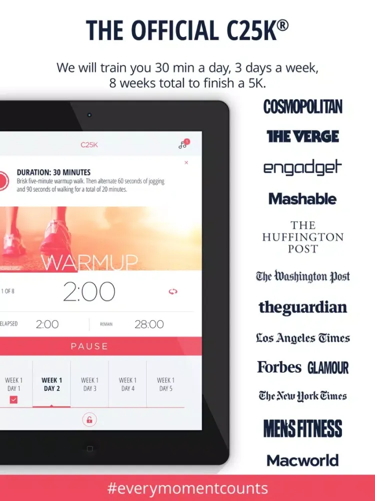 "C25K is easy to use, as you would hope for a beginner app." - New York Times