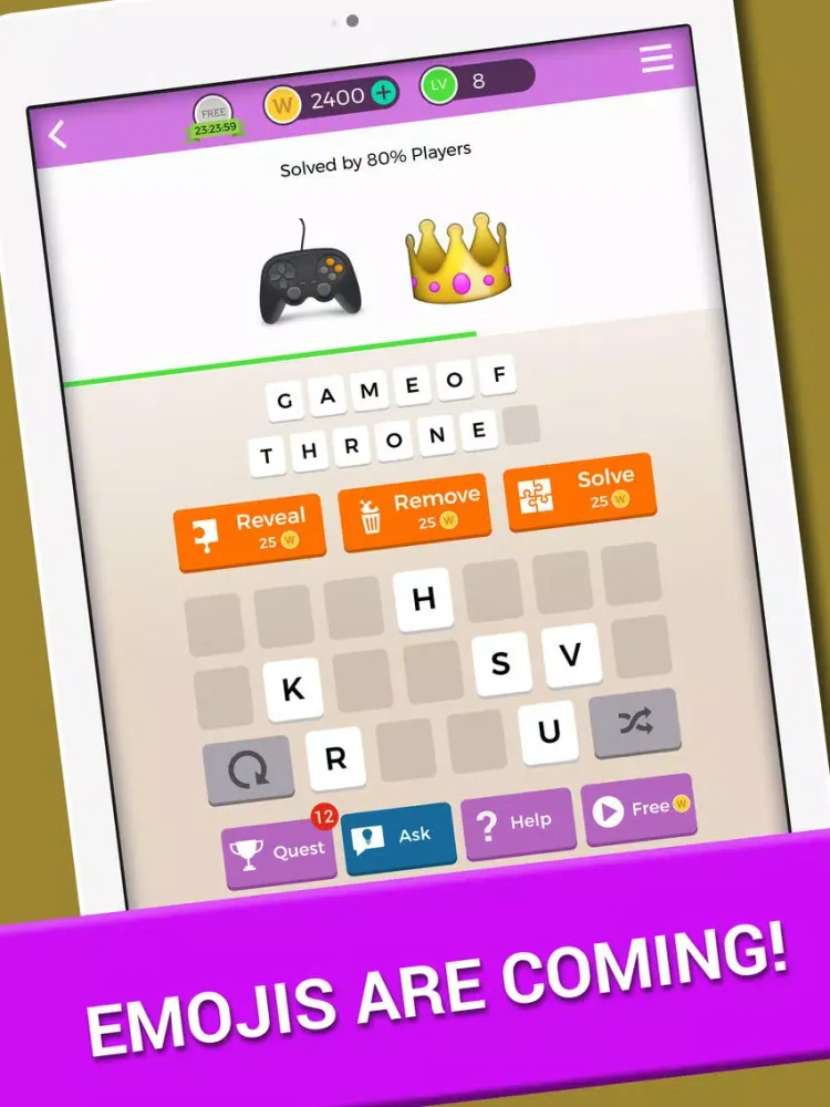 Expose Two Letters: Use this hint when you need extra letters to guess the emojis on a hard puzzle!
