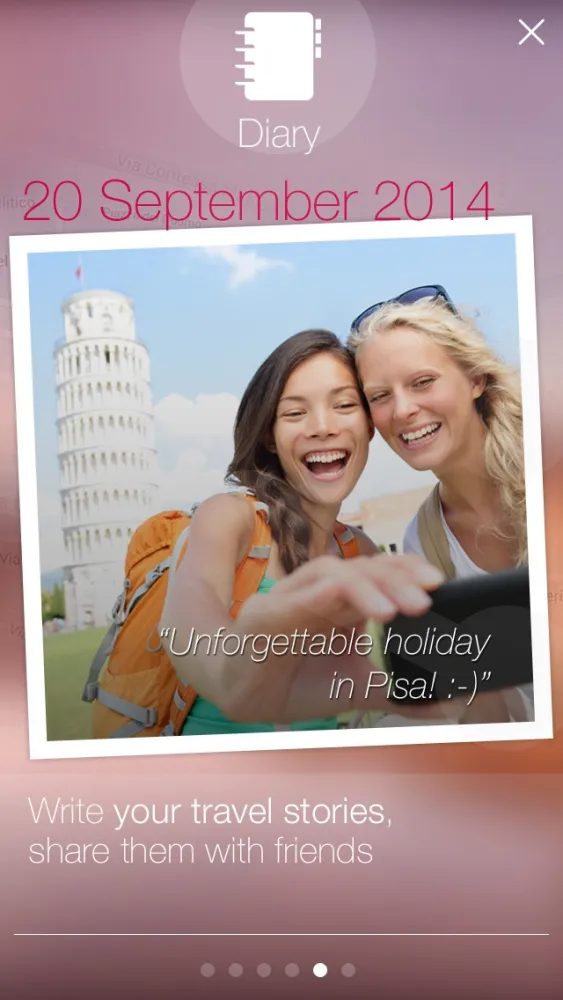 - Write the story of your visit to Pisa saving photos and places in the Diary.
