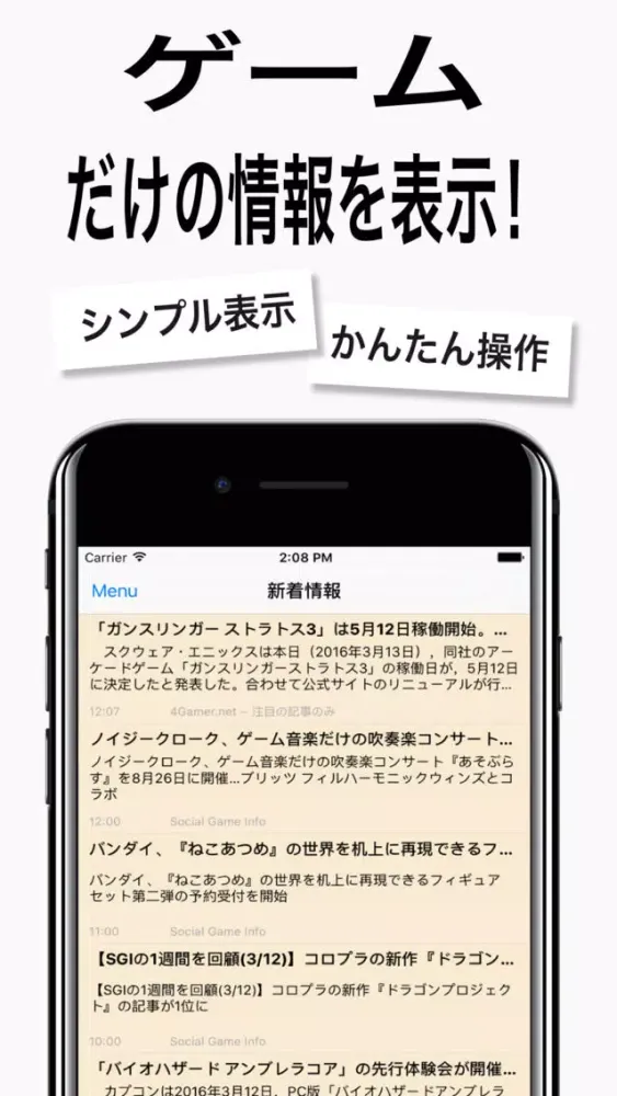 シンプルな表示で、他の雑音を気にせずゲームのニュースのみ閲覧できます。