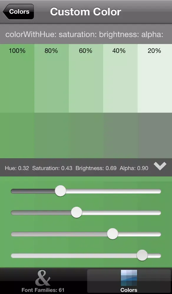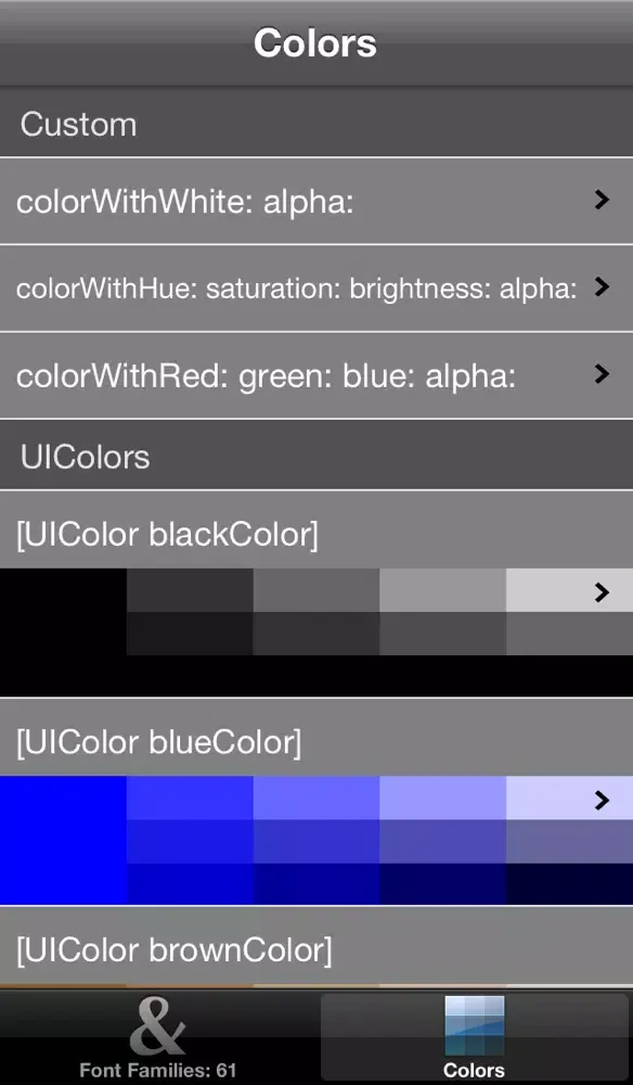 Dev Helper is a great tool for developers and designers to collaborate on fonts and colors for your iOS projects. It's simple - there will be no more banging your head against the wall wondering what fonts and colors are on your iOS device. Dev Helper illustrates all default fonts and system defined colors available on your iOS device. You can also mix custom colors.