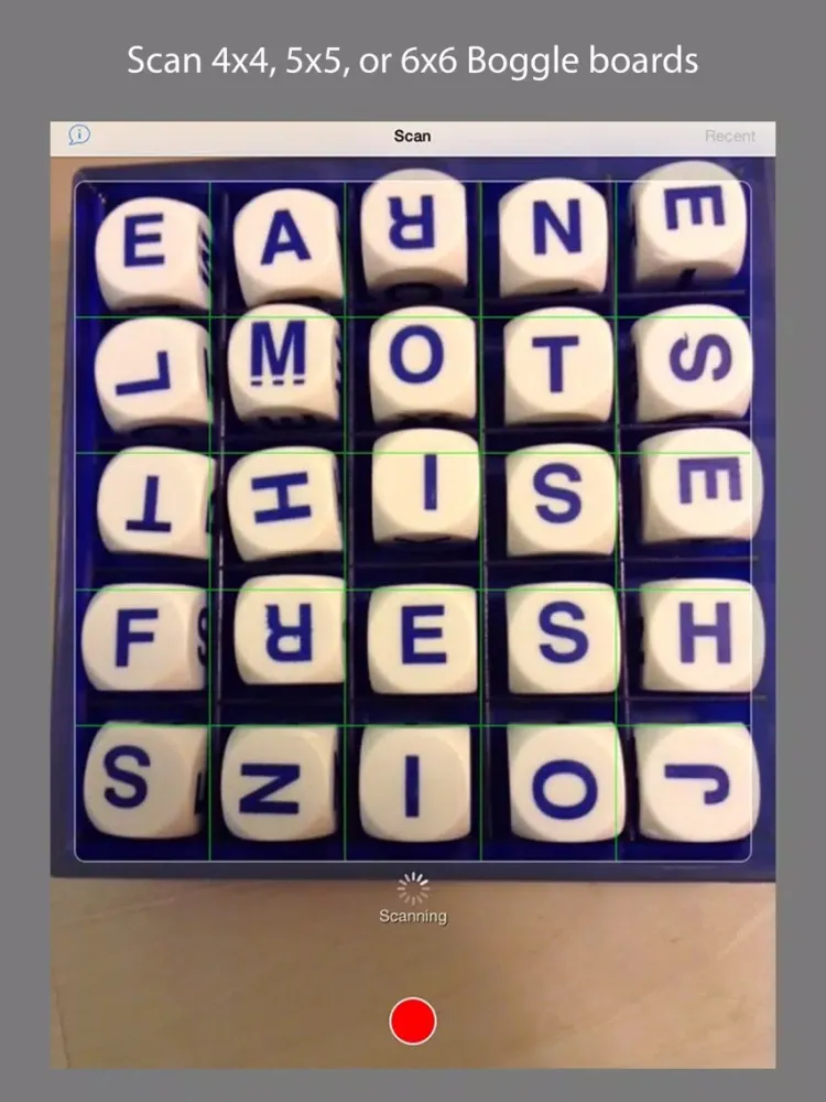 With this app you can quickly scan and solve 4x4, 5x5, and 6x6 boards. No manual entry is required.