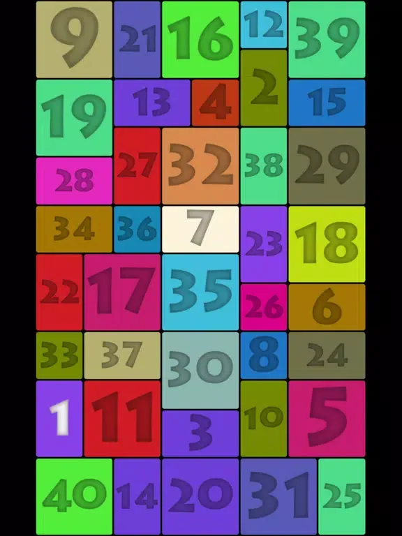 This is short, simple, addictive mind test and training. The aim is to find, as fast as possible, all 40 numbered tiles (by tapping them) consecutively, starting from tile number 1 and ending at tile number 40.