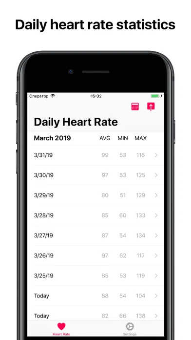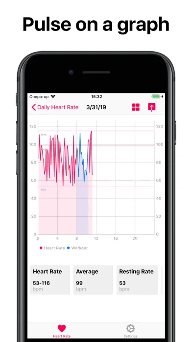 Heart Graph app allows you to see average, minimal and maximum values of your heart rate in the form of the table or graph.