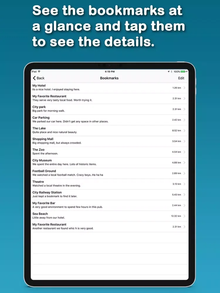 - You can add details of the bookmark and add photos to the bookmark. It will become a travel diary for you.