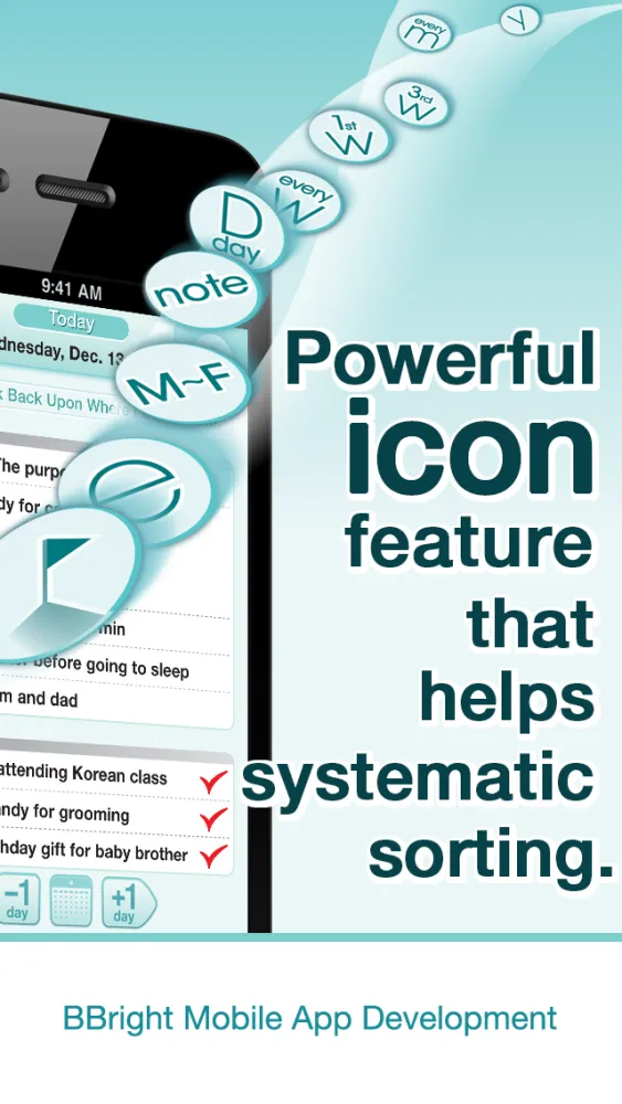 Users can add daily task or event details through a quick tap of the (+) key at the top of the screen. If the user wants to set a task or event for a specific day, ez Tasking provides an arrow feature at the bottom of the screen that allows users to view the next or previous day. There is also a calendar view that allows the user to select a specific date without scrolling.