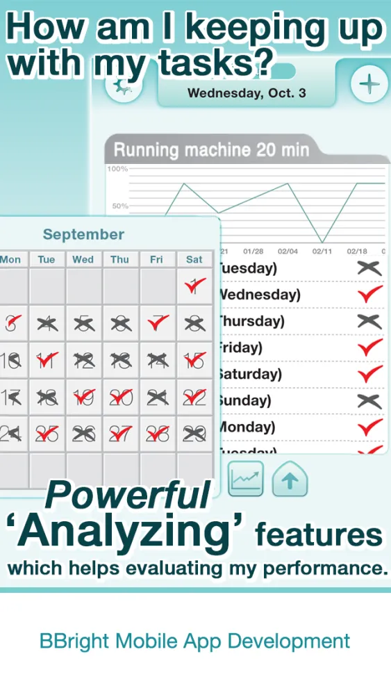 To help the user stay on track, ez Tasking features a dynamic graph system where users can view statistics of their accomplished tasks and events and analyze their performance. Users can export and post the statistics reports and dynamic graph image to Facebook, E-mail, or SMS. ez Tasking can sync with iCloud so the user can stay organized across multiple devices, such as their iPhone, iPad, and Mac. Data can also automatically be recovered even upon reinstallation of ez Tasking.