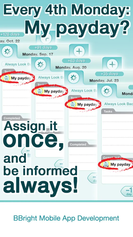 ez Tasking provides users with the ability to set rules on repetitive events. Users can select days, times, and which weeks the event will repeat. Once a task or event is completed, the user can tap on the text to edit or check it off. Completed tasks automatically move to the Completed category.